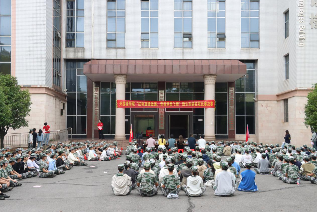 9月21日15:00,外国语学院“红色旋律激荡,青春梦想飞翔”新生军训红歌比赛决赛在外语楼前坪隆重举行。外国语学院学工办主任邱国周、辅导员陈琴、刘方红、曾超出席,学院2025级全体学生参加。军歌嘹亮颂华诞,青春激昂传薪火。