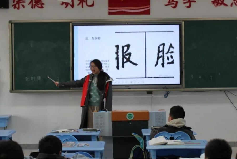 长风书法协会志愿者在本次课堂中带领孩子们书写汉字偏旁,探寻汉字之美。志愿者以笔为舟,以纸为航,将横竖撇捺化作清泉,缓缓流入童稚心田。孩子们专注的眼神如繁星闪烁,小小的手握着笔,在点画间领悟硬笔书法的魅力。这一刻,墨香浸润童年,汉字在指尖绽放成花。