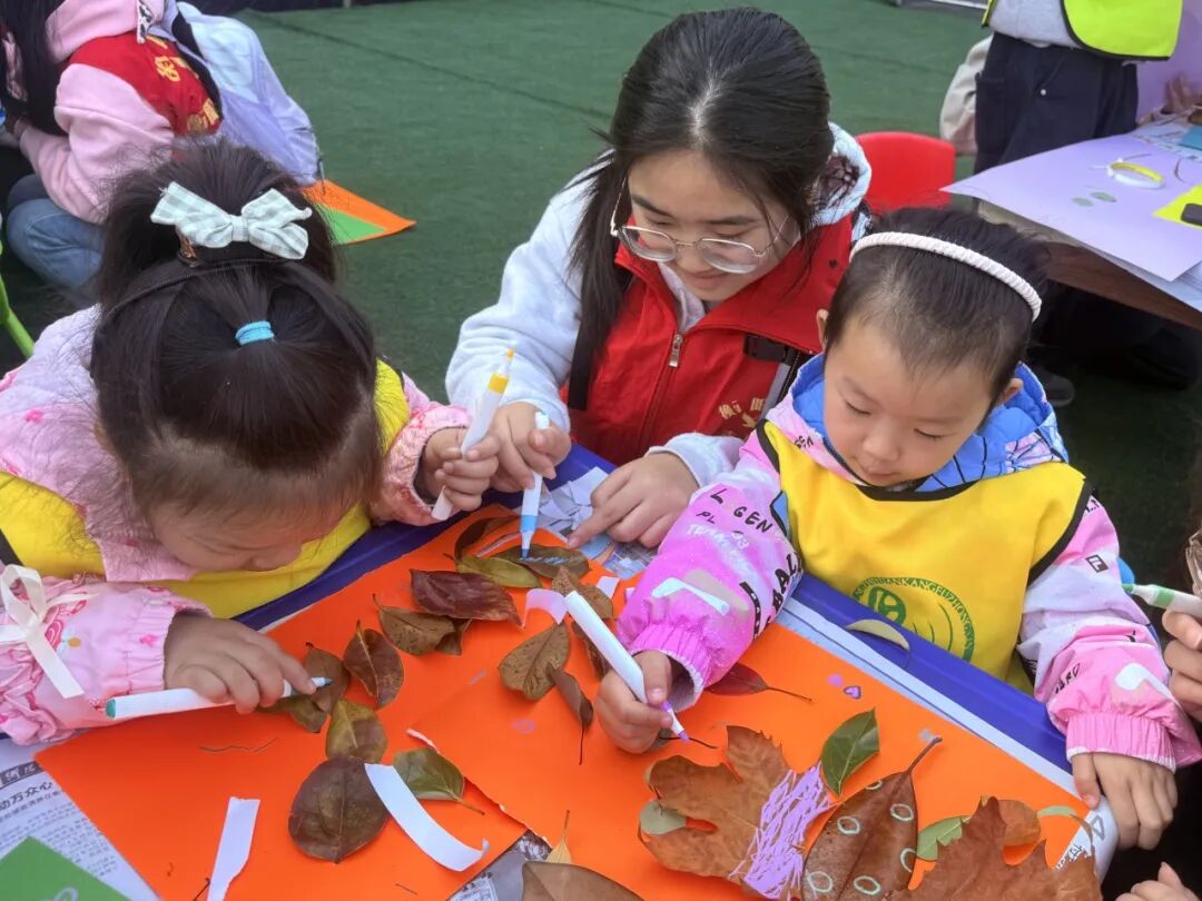 欣赏完志愿者的精彩节目,便进入了欢乐的手工时间。志愿者与老人、孩子们协作,用树叶、花瓣、卡纸等材料创作“树叶画”,留存下秋日最后的余温。一片片树叶,一朵朵花瓣,在大家手中化为创意十足的艺术品。不仅有活灵活现的小动物,还有枝繁叶茂的大树在卡纸上舒展枝叶……每一件作品都承载着大家的创意与心意。