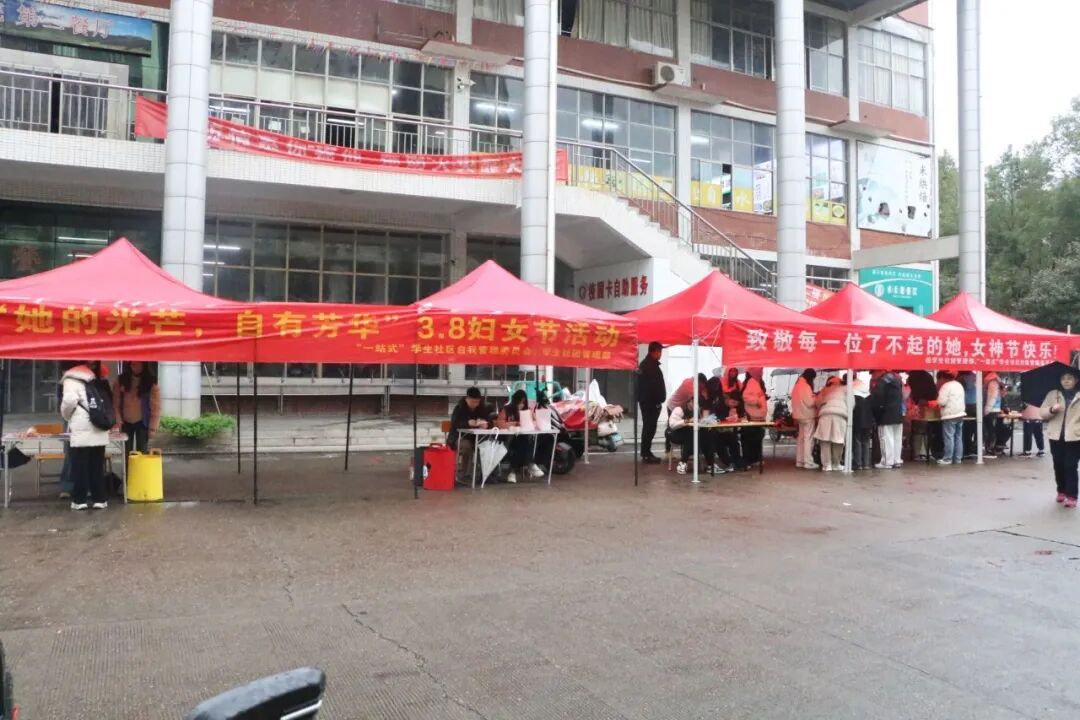 三月春风暖,八方锦绣开。为庆祝第116个“三八”国际妇女节,弘扬坚韧不拔的女性力量,彰显新时代女性的多元价值与独特魅力,同时丰富校园文化生活,3月8日,学生社团管理部携手“一站式”学生社区自我管理委员会,共同举办“她的光芒,自有芳华”主题活动。活动场地设置于东校区老食堂对面、西校区第一食堂对面,设计英文祝福、创意游戏、知识科普、手工创作等互动栏位,吸引许多同学驻足参与。