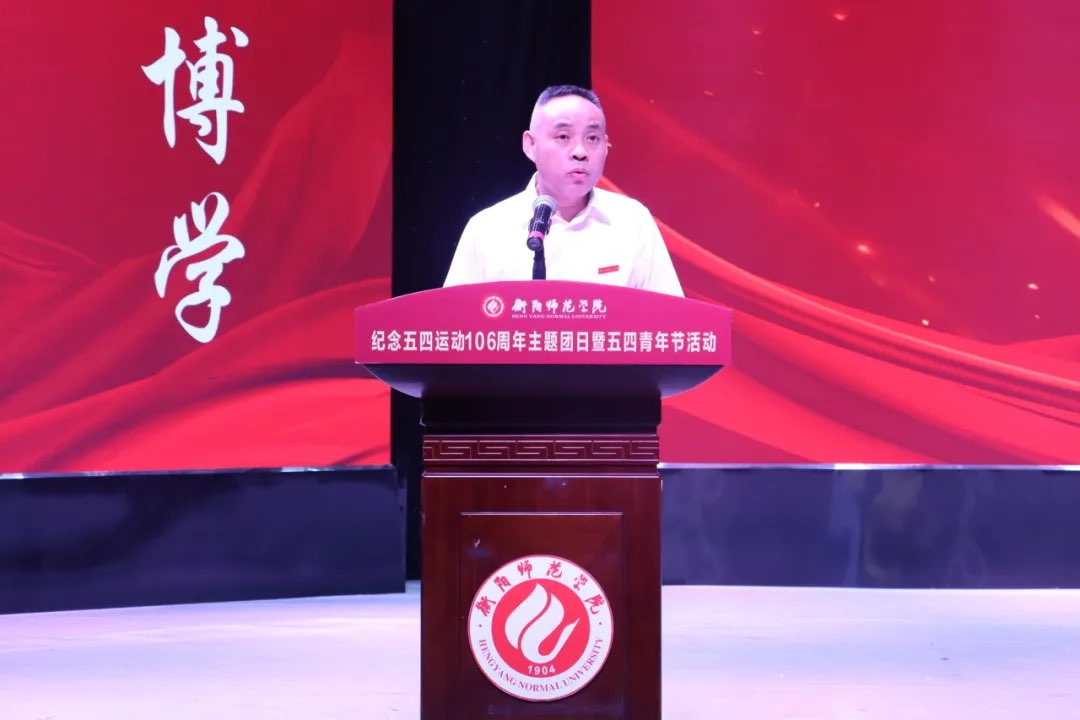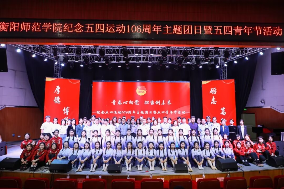 2025年5月7日上午,衡阳师范学院东校区演艺厅内气氛热烈、青春洋溢,纪念五四运动106周年主题团日暨五四青年节活动在此隆重举行。校党委副书记、校长刘子兰,党委委员、副校长唐芳贵,党委委员、组织部部长唐艳出席活动,各职能部门负责人、学院党总支书记、副书记、团委书记以及师生代表400余人齐聚一堂,共同见证这场青春盛会。