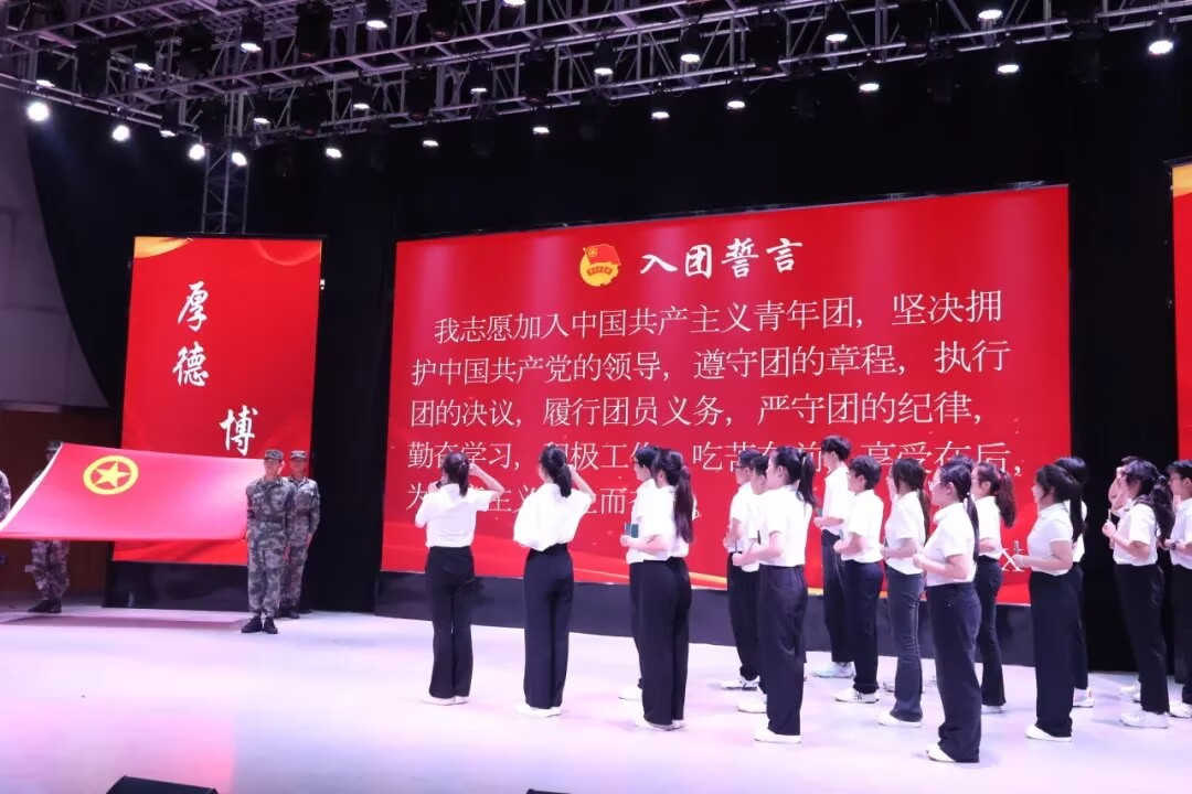 新发展团员代表面向团旗,庄严宣誓,铿锵有力的誓言彰显出新时代共青团员的使命与担当。