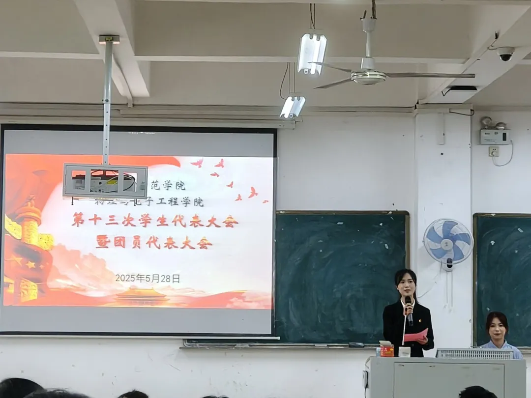 5月28日晚,物理与电子工程学院第十三次团员代表大会暨学生代表大会在星瀚楼南112隆重举行。物理与电子工程学院党总支副书记谢荣华,辅导员钟宇静、谭咏佳、陈志祥、吴书越、尹艺蓓出席此次会议。物理与电子工程学院第十二届分团委学生会主席团成员、第十三届分团委学生会主席团候选人以及来自22级-24级的209名学生代表参加此次会议。