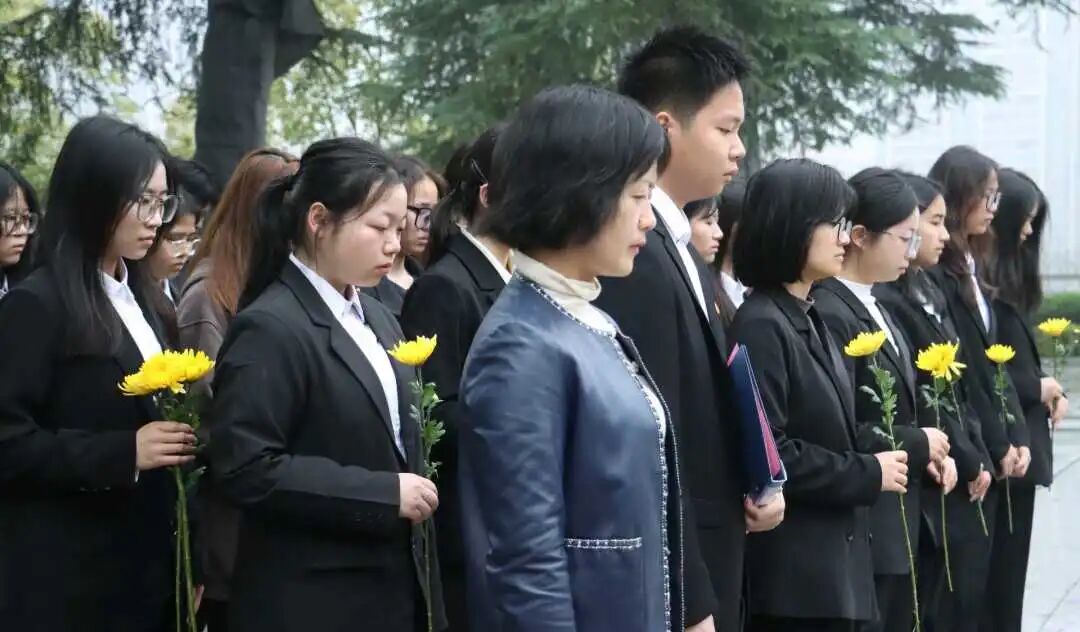 上午九时,全体师生在烈士纪念碑前整齐列队,祭扫仪式在庄严的国歌声中拉开帷幕。全体人员脱帽默哀一分钟,向为民族独立、人民解放和国家富强英勇献身的革命先烈致以深切哀思。