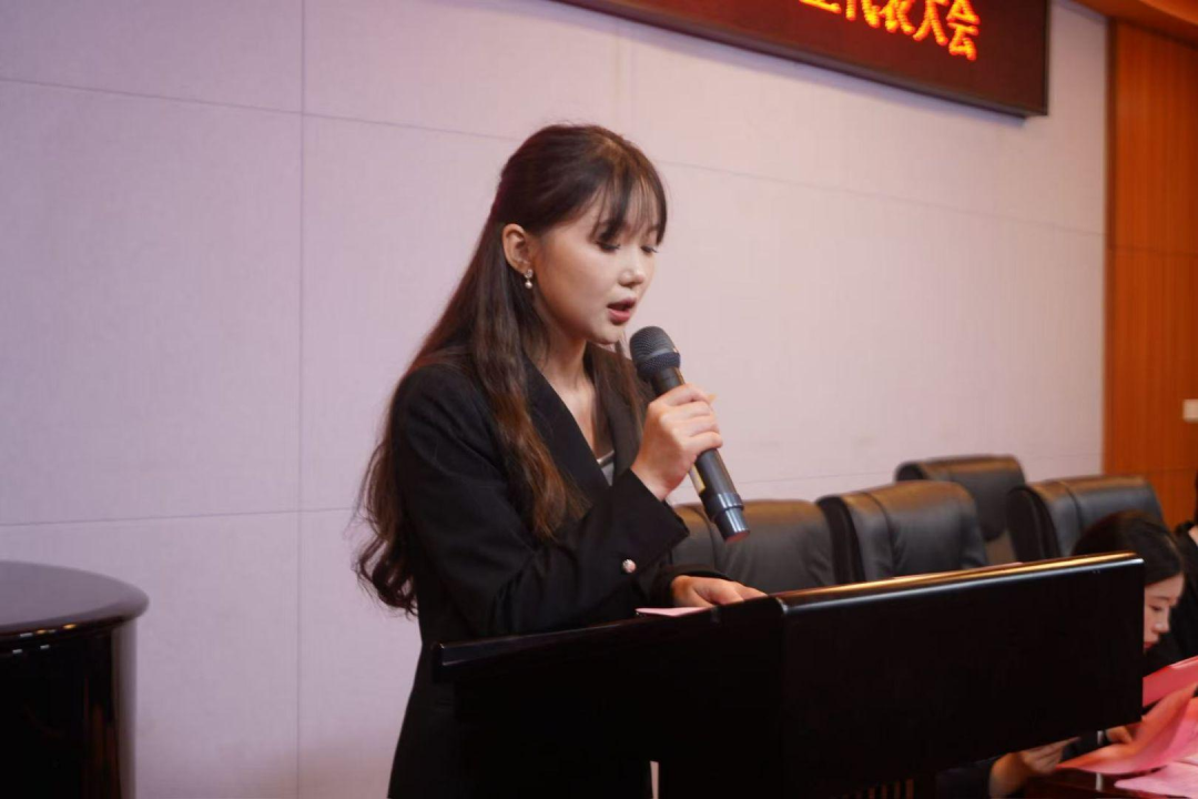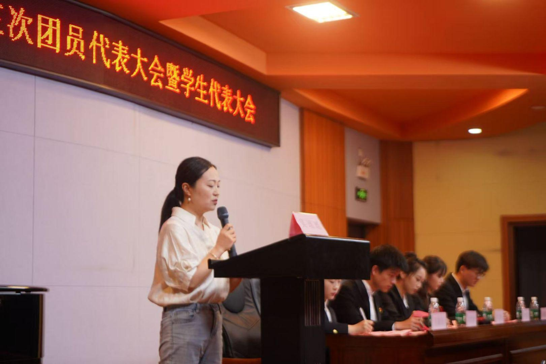 第二十四届团委副书记刘妍对过去一年的团委工作进行了汇报总结,同时对新一届团委工作提出要求,希望新一届团委能够勇担时代重任,践行志愿精神,贡献青春力量。